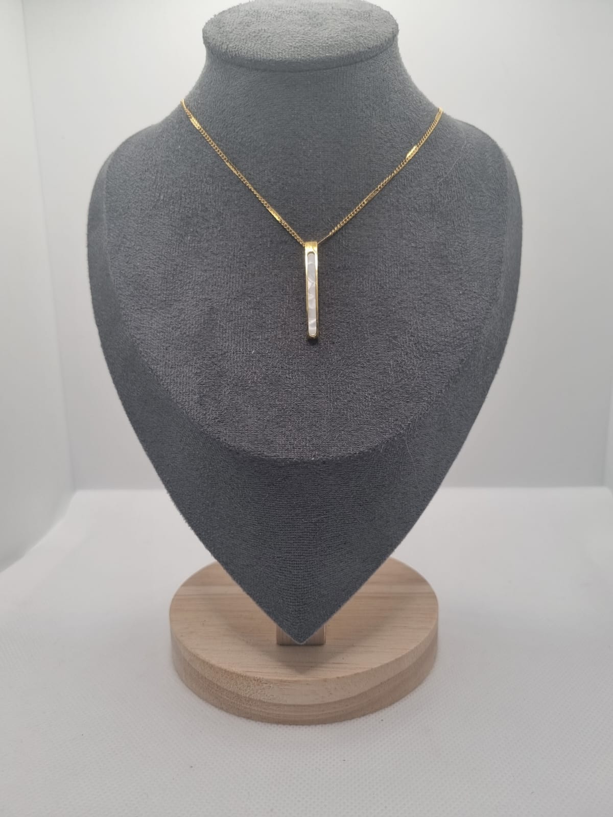 18K gold-plated stainless-steel fine chain with a slim vertical bar pendant inlaid with iridescent mother-of-pearl. Elegant, durable, tarnish-resistant.